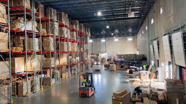 靠近多倫多機場和火車站,總占地面積40000平方英尺,5個卸貨口,日處理訂單最高達3000件。